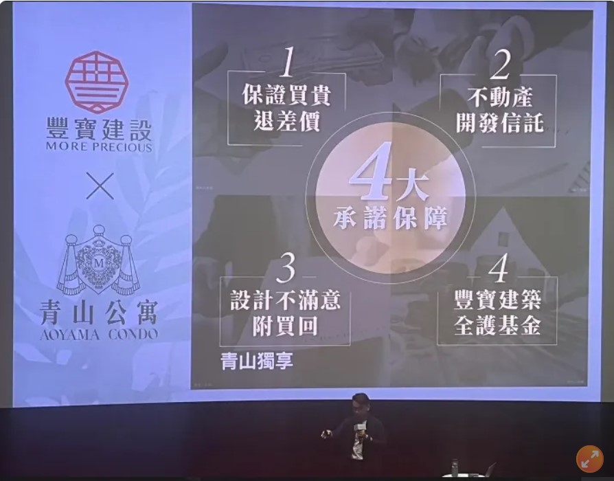 豐寶建設總經理施棟瀝表示,「青山公寓」基地3面採光規劃台灣水泥與300支微型樁及預力基樁,電梯配日本URSHIO光源技術台達電+抑菌艙,並有智能信箱宅配櫃,為讓住戶買到安心住宅,建案推出「保證買貴退差價」、「不動產開發信託」、「豐寶全護基金」,與「設計不滿意附買回」4大保證,產品訴求社區單純且居住實坪相對多,免去將大筆費用支付在公設中。