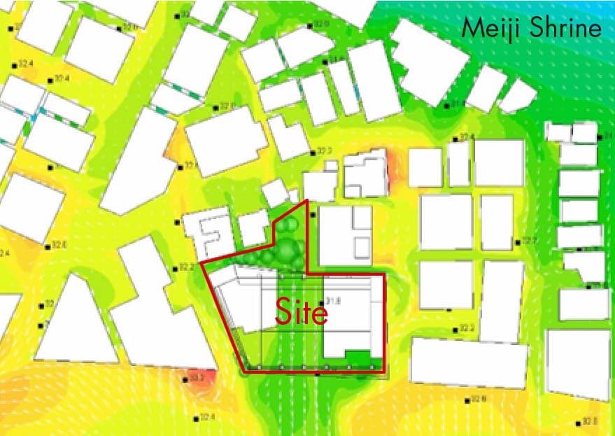 從明治神宮外苑引進冷風,使環境負荷得到減輕的氣溫模擬